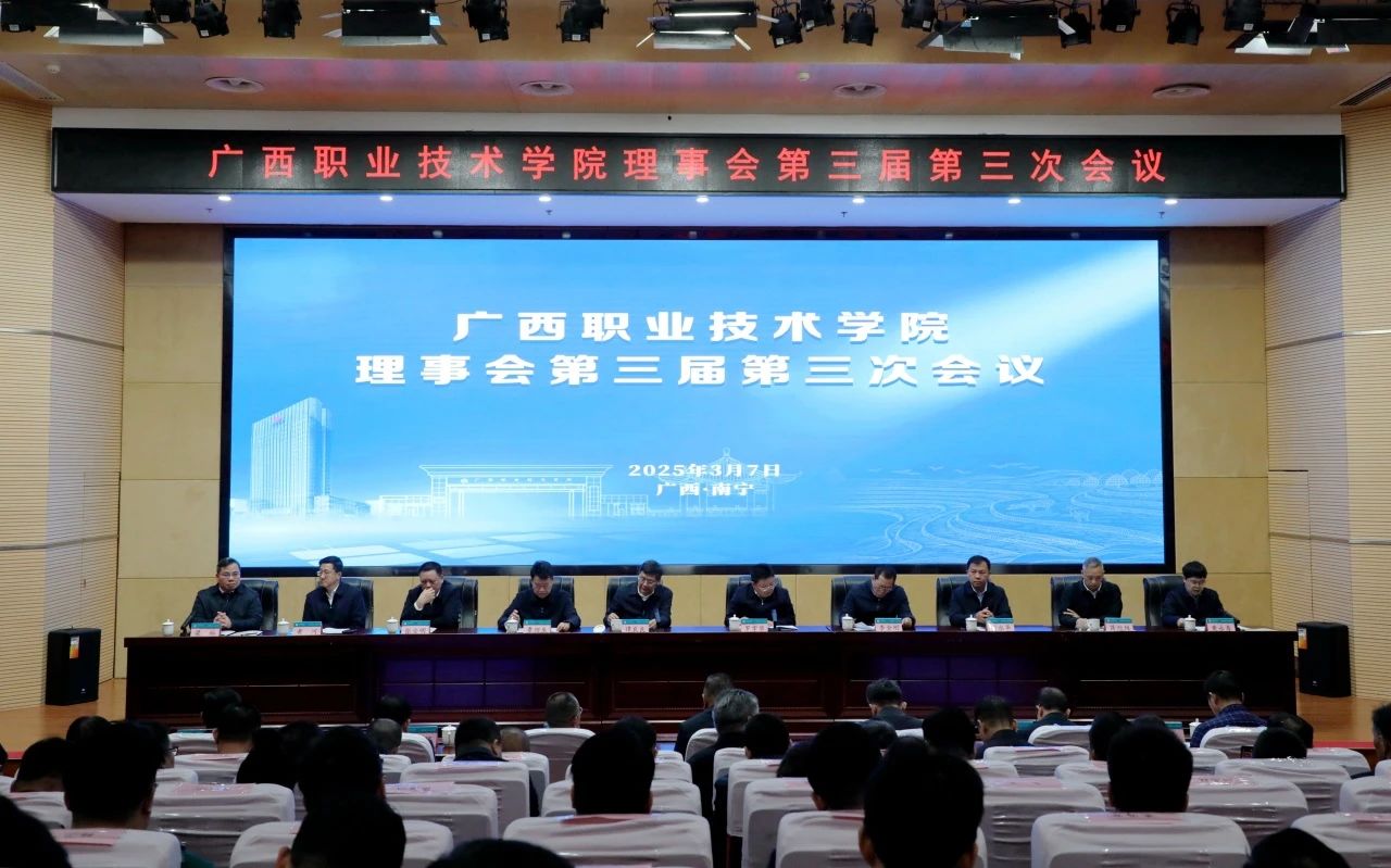 3月7日,廣西職業(yè)技術(shù)學(xué)院理事會第三屆第三次會議召開。會議全面回顧總結(jié)了學(xué)校2024年主要工作,明確了2025年的工作目標(biāo)和主要任務(wù)。廣西農(nóng)墾集團(tuán)黨委書記、董事長、學(xué)校理事會理事長譚良良出席會議并作工作報告,強(qiáng)調(diào)要以習(xí)近平新時代中國特色社會主義思想為指導(dǎo),圍繞自治區(qū)“一區(qū)兩地一園一通”建設(shè)任務(wù),攜手各方深化產(chǎn)教融合,勇攀教學(xué)高峰,全力推動廣職院建設(shè)與教學(xué)工作實現(xiàn)高質(zhì)量發(fā)展,為成員單位事業(yè)發(fā)展以及譜寫中國式現(xiàn)代化廣西篇章貢獻(xiàn)更大力量。